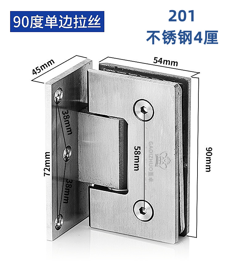 淋浴房卫生间玻璃门夹合页铰链90度单(3孔)
